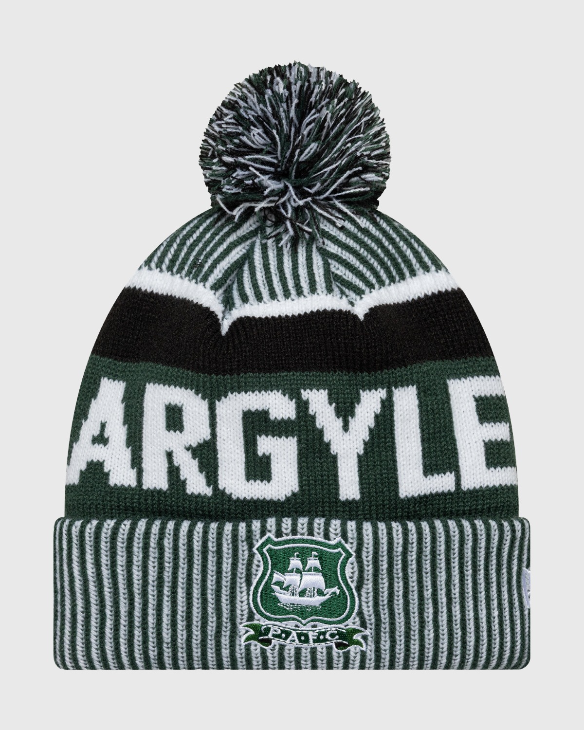 Show your support in style with this Plymouth Argyle x New Era Beanie. Designed in classic Argyle green with bold lettering and a statement pom on top, this beanie blends comfort and club pride effortlessly. The ribbed cuff features the iconic PAFC crest for an authentic touch, while the premium knit ensures warmth on matchdays and beyond.