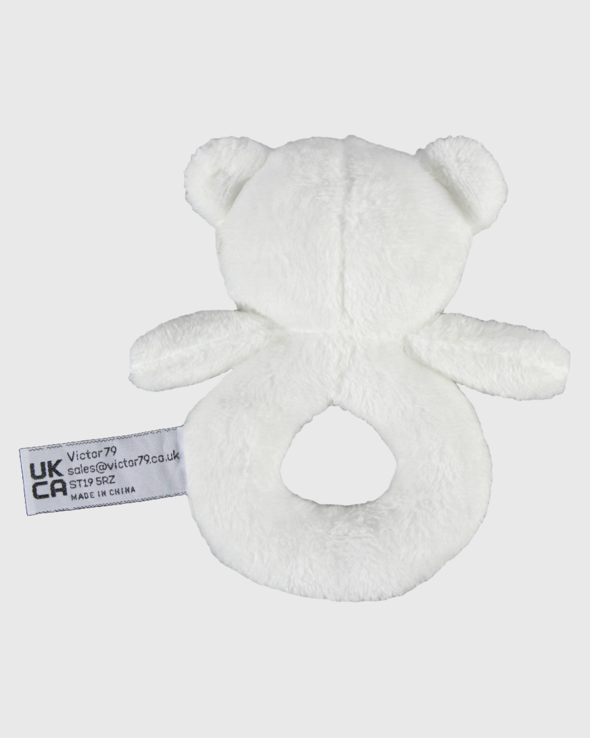 Keep your little one calm with the Hushabye Rattle. It features a Bear design with a 'Born an Argyle fan' message, and produces a ringing sound when shaken.
