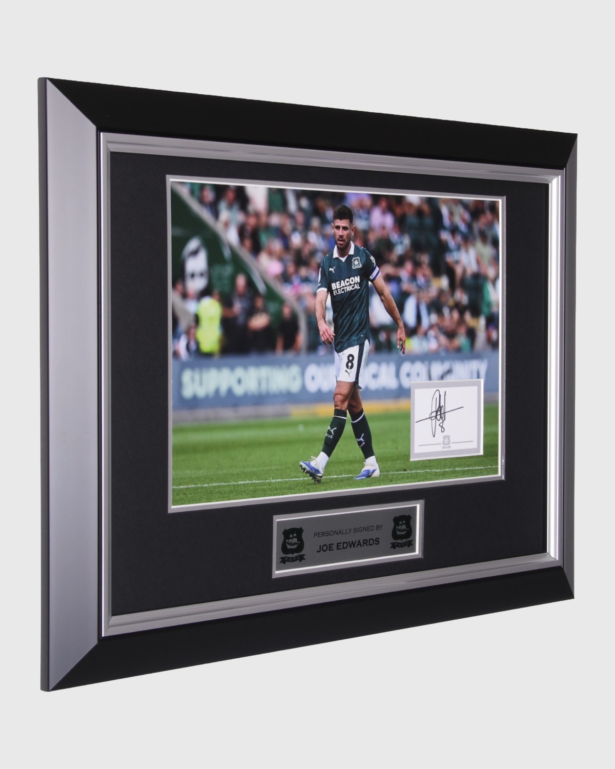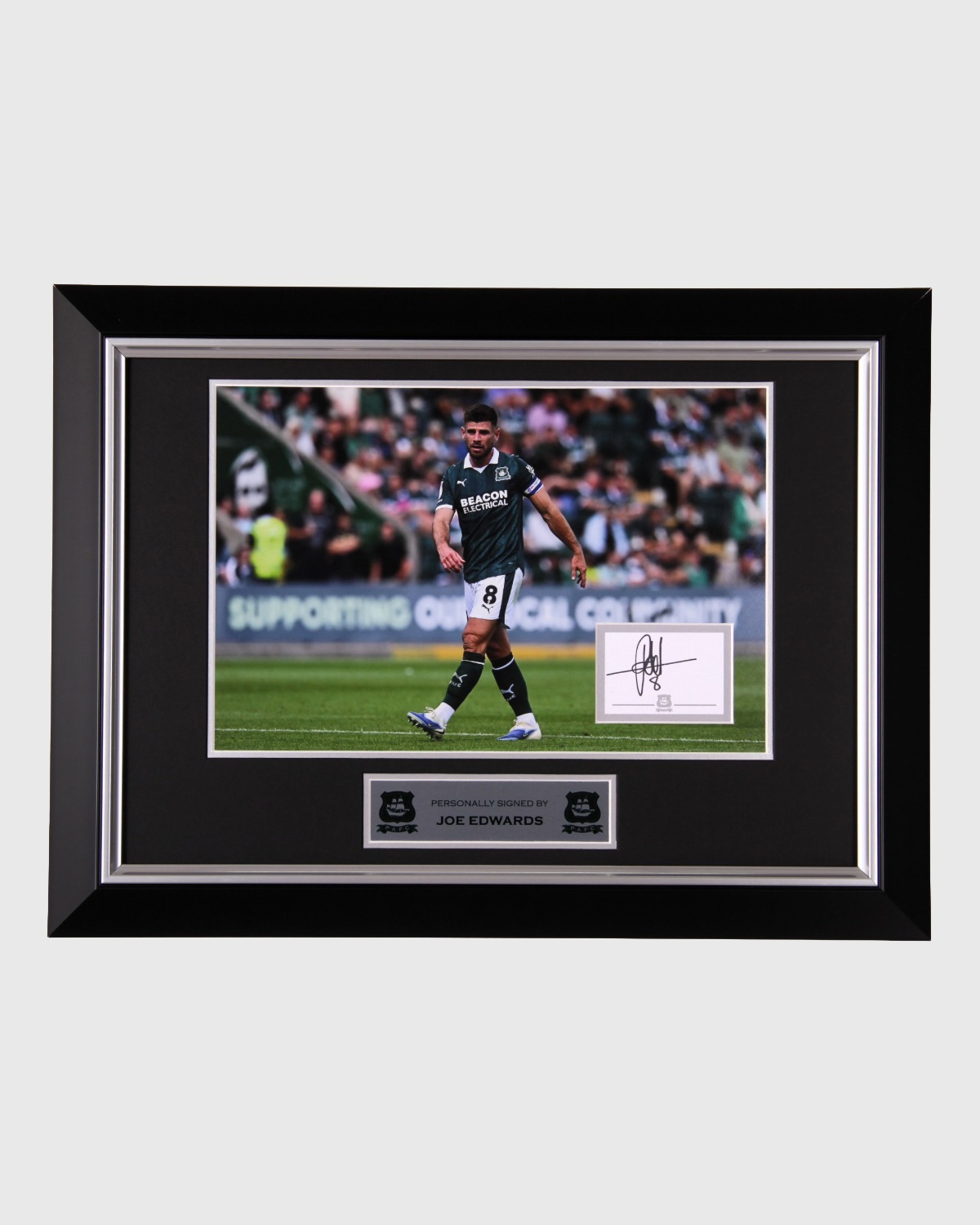 Commemorate a true Argyle leader with this exclusive Signed Joe Edwards Print. Capturing the skipper in action, this professionally framed piece is personally signed and makes a standout addition to any fan’s collection. A timeless keepsake celebrating Edwards’ commitment and influence at Plymouth Argyle.